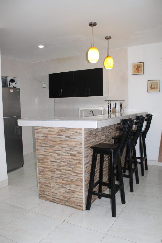 - Cocina con nevera, estufa, vajilla y demas utensilios